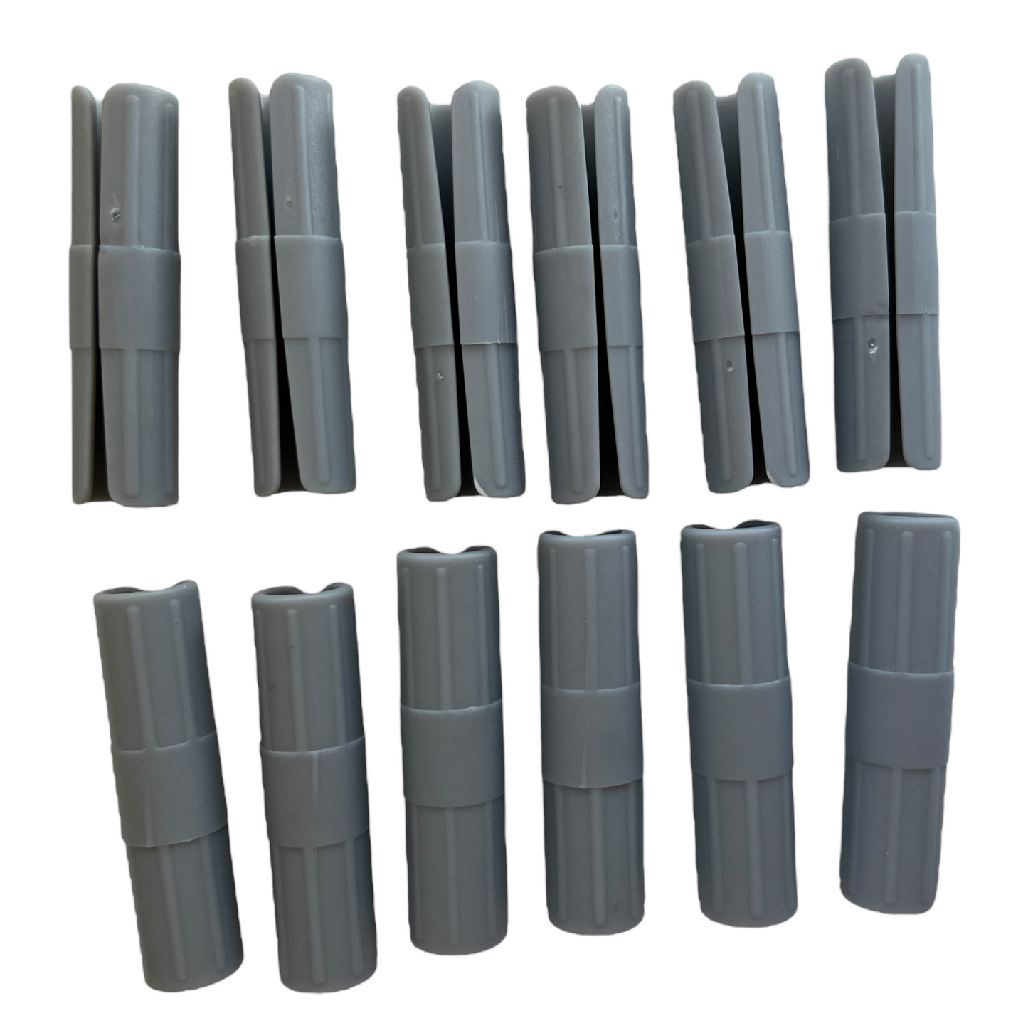Image Description: A grey and hollow plastic tube with an opening down one side, enabling you to slide the side mattress seam with the sheet over it into the hollow of the tube. This will help to secure your sheets onto your bed, keeping them stay in place more easily.