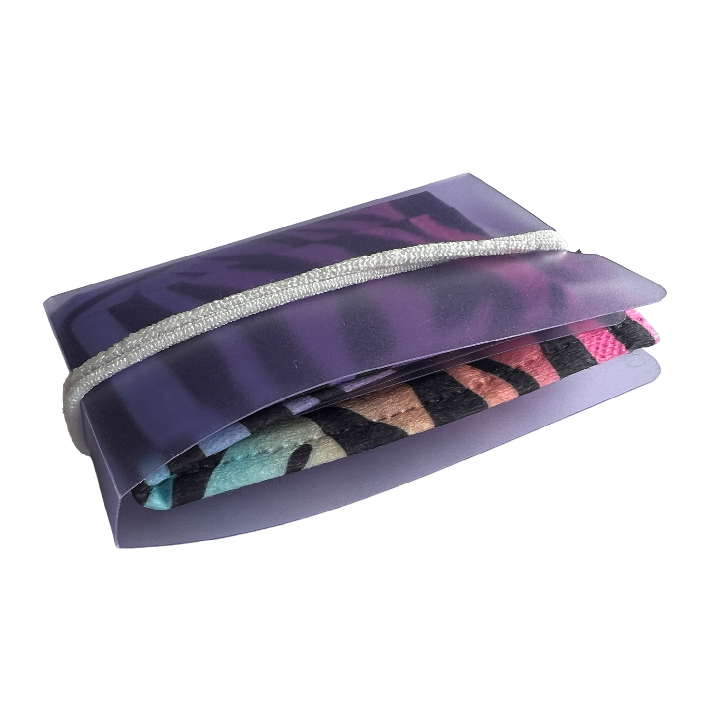 5. Your mask should now be held in place, protected and ready to be put into your bag for use when you next need your mask. To remove simply unfold the elastic, and slip the mask out away from the plastic.