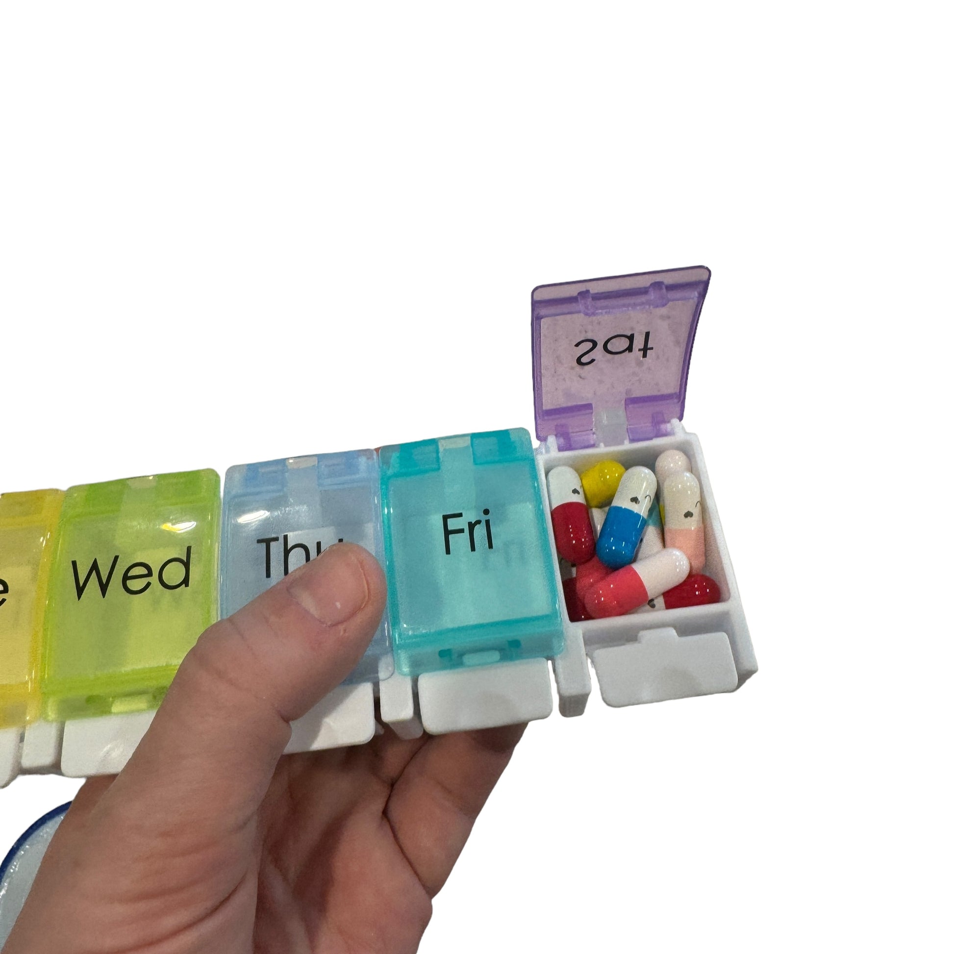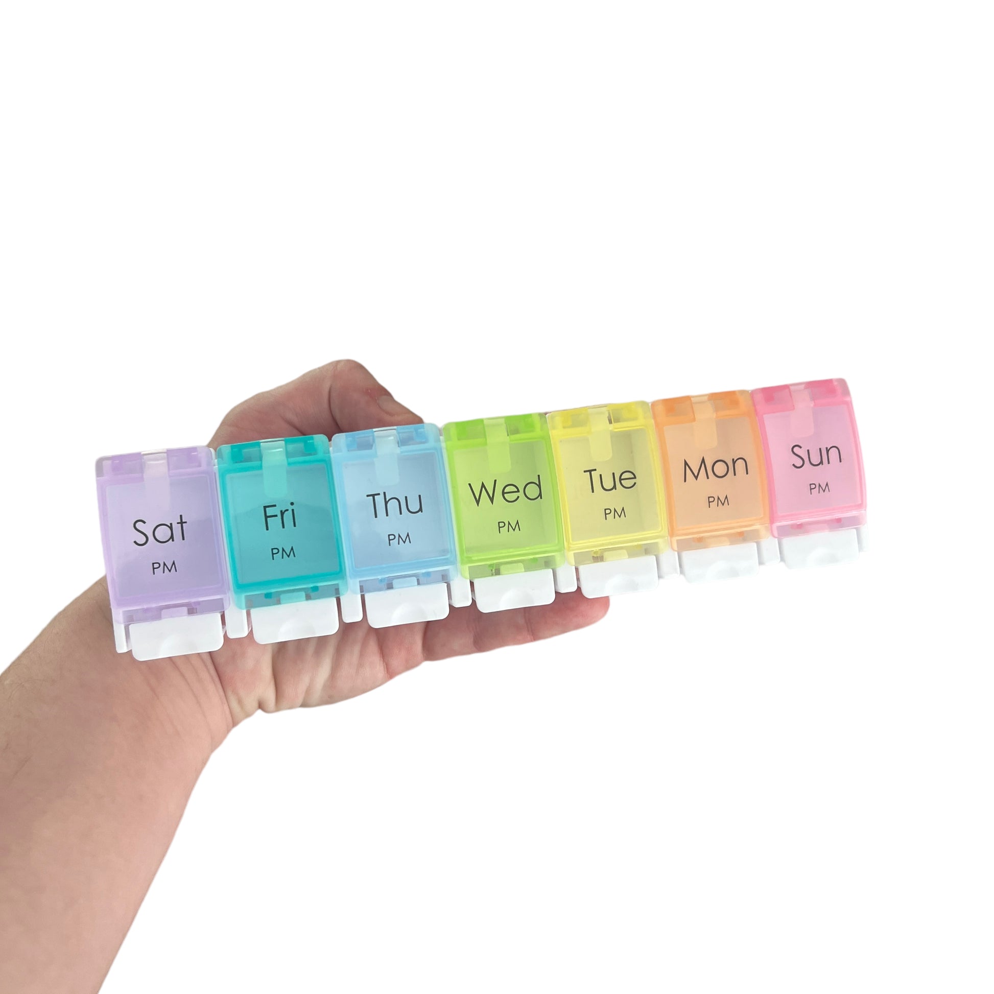 Each day has its own easy-to-identify colour, and has secure lids that click into place with an easy “click open” button. This is an especially beneficial option for those with reduced dexterity or finger strength!
