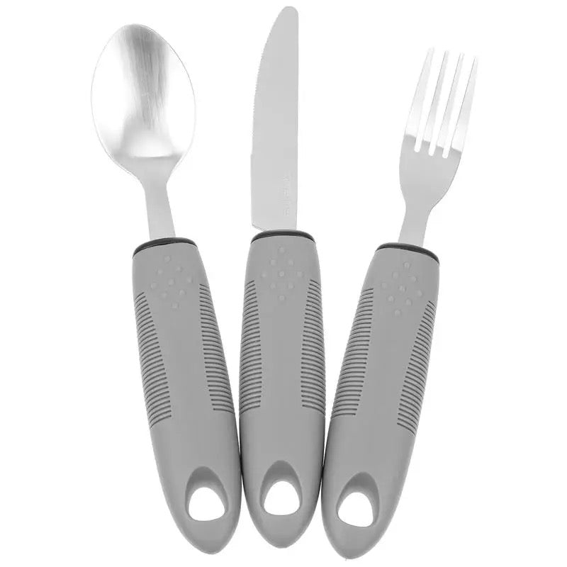 These are crafted from durable materials, with a textured handle for east non slip grip, and have been designed to be resistant to deformation and breakage, guaranteeing long-lasting, reusable tableware. This accessible cutlery set is designed to make dining more comfortable and convenient for individuals with disabilities and the elderly, providing both support and durability for extended use.