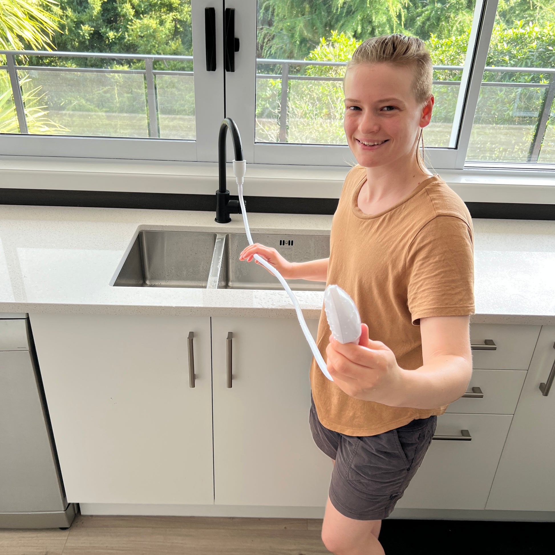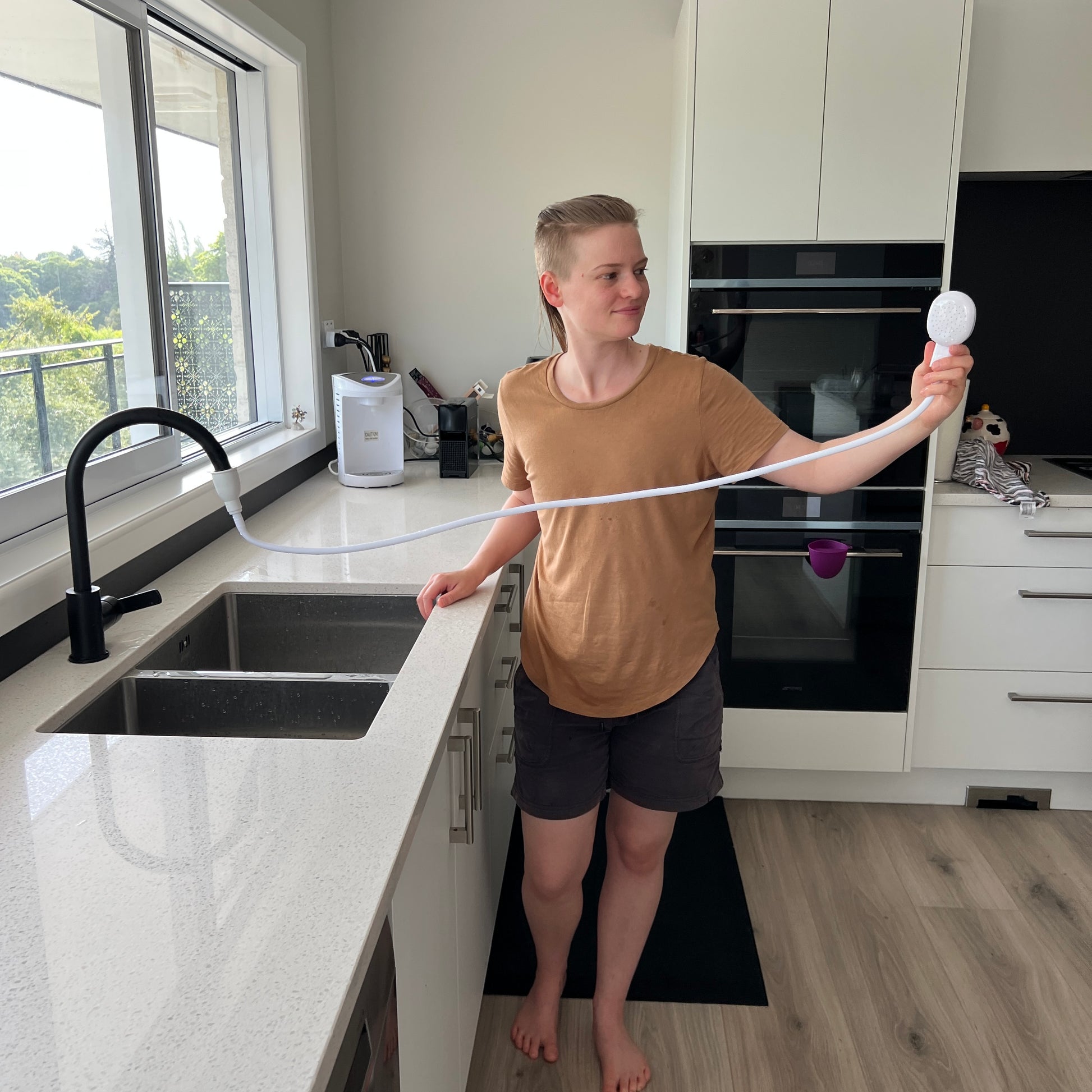Need to wash your hair without hopping in the shower? Rinse off after a bath? Clean muddy feet or sandy toes at the back door? Bathe your pet without the chaos? This handy little hose is your go-to. It’s also a great option for anyone navigating chronic illness, recovery, or low energy days where a full shower just isn’t practical.