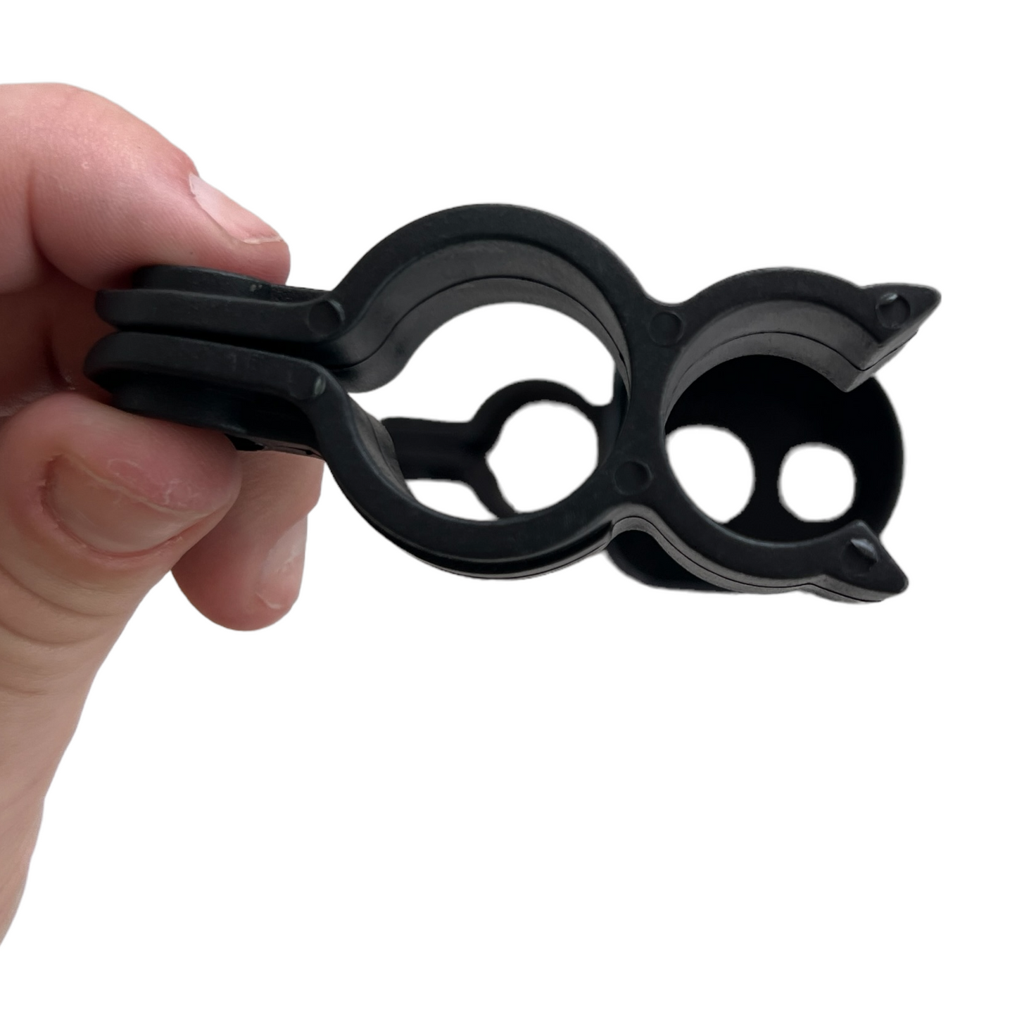 Crutches, walking stick and umbrella holder for your wheelchair, scooter or mobility device. Snap the clip around the pole and screw to hold tightly in place.