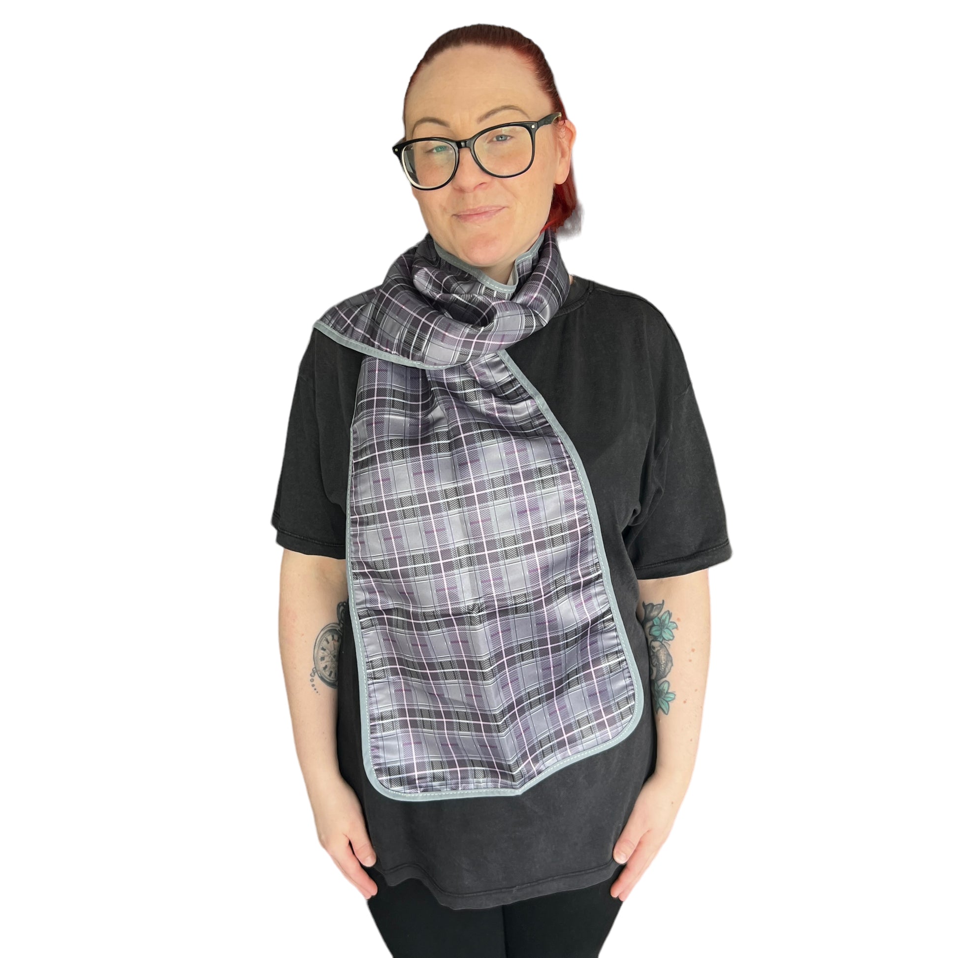 Introducing this innovative and stylish Dignity Scarves – a discreet yet practical solution crafted to provide comfort and confidence for individuals navigating challenges with eating, drinking, or managing oral secretions. Whether it's due to a disability, medical condition, injury, or age-related needs, our scarves offer a dignified, fashionable alternative to traditional bibs, while seamlessly blending into everyday attire.