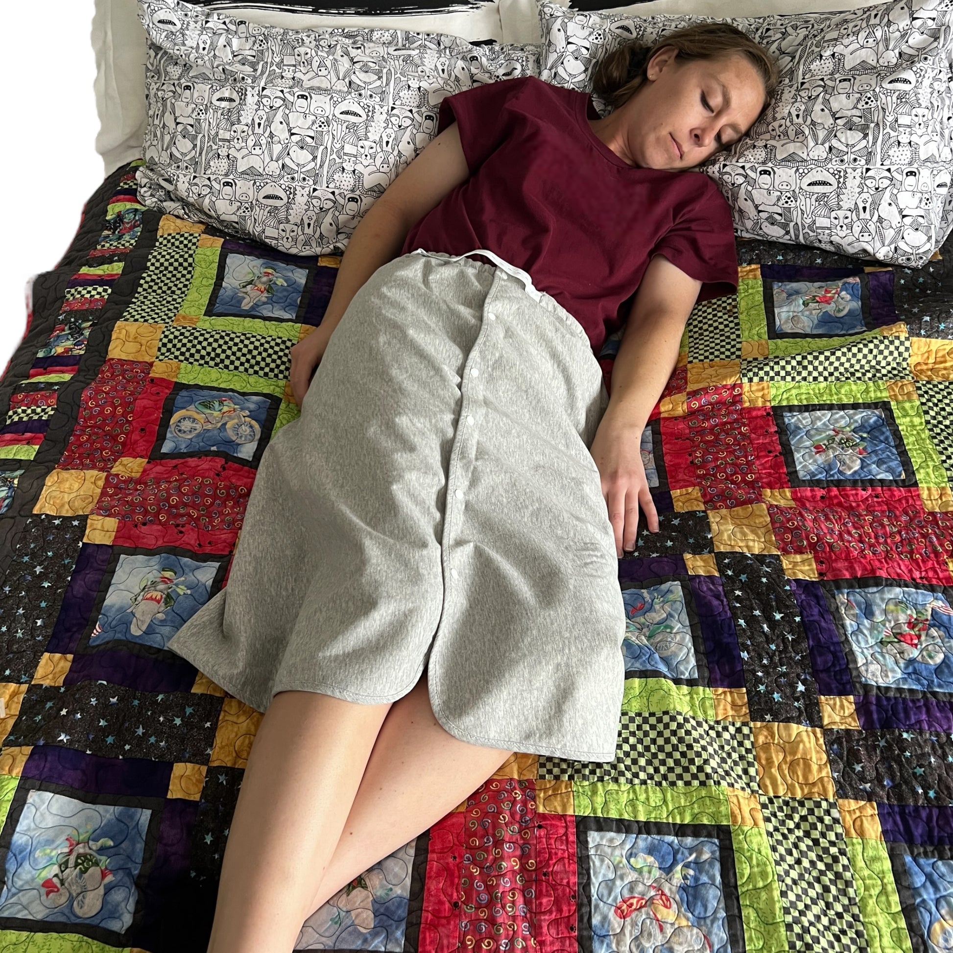 — Those with feeding tubes that leak, or when disconnections happen and you end up “feeding the bed”. Keep the connections inside of the wrap and know that if it does disconnect it’s an easy clean up