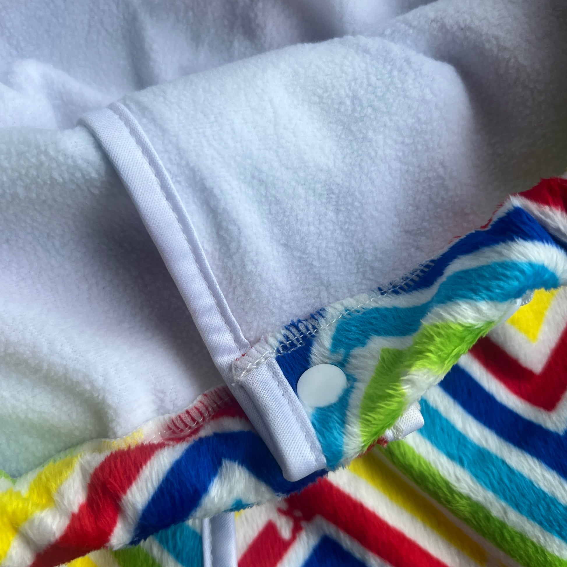 Each wrap has been designed with 3 layers of leak-proof protection, offering 360 degrees of peace of mind that any accidents or leaks will be contained. The inner layer is an absorbent bamboo fibre inner fabric, the middle layer is made from a breatheable TPU waterproof fabric, finishes with an outer fleece layer. This makes it comfortable to wear anywhere!