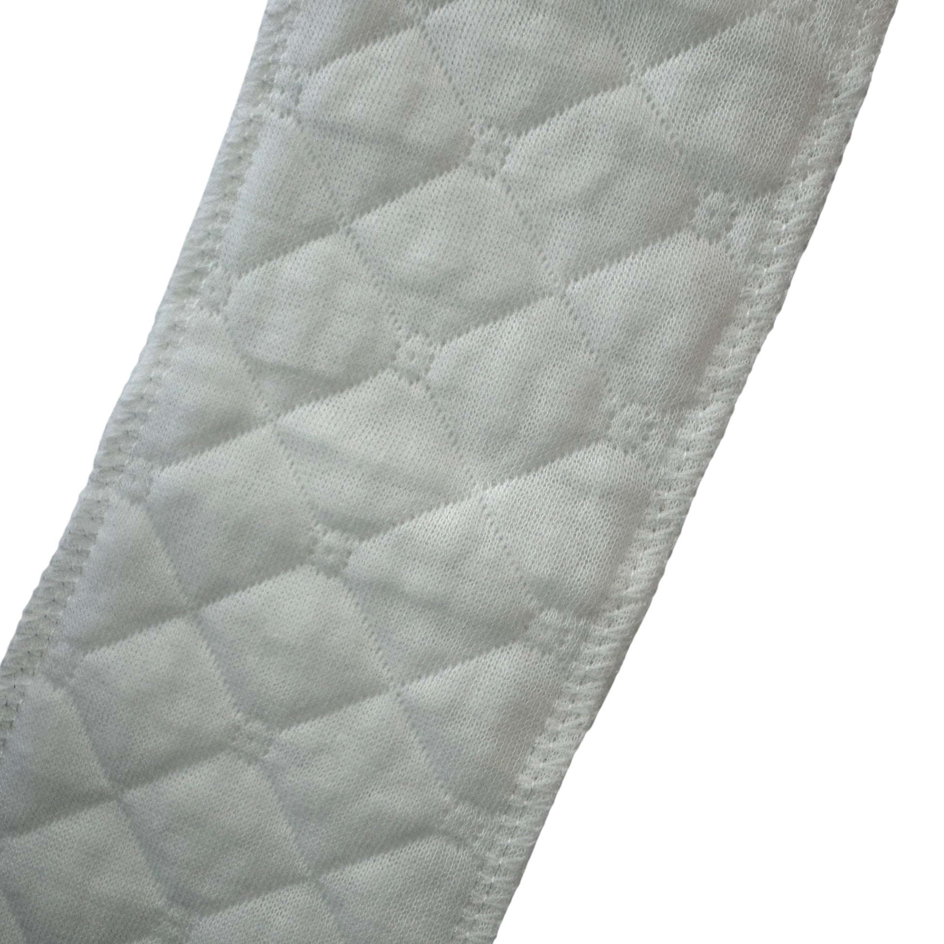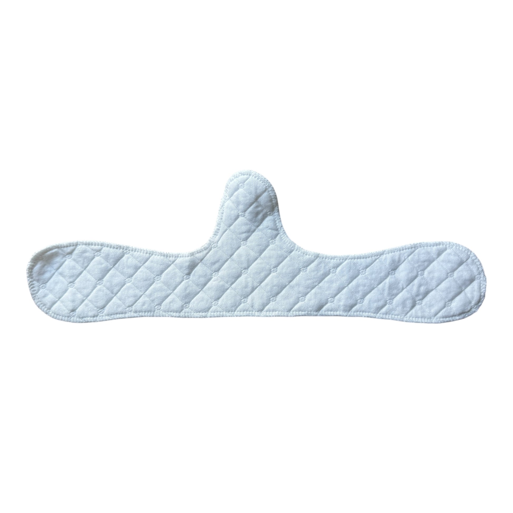 Image DescriptionA long, rectangular quilted fabric liner with slightly rounded ends. The surface features a diamond-stitched pattern, and the material appears soft and absorbent. Light in colour, the liner is designed to sit flat against the skin to help absorb sweat and reduce irritation under the bust, tummy fold, or in other skin crease areas.