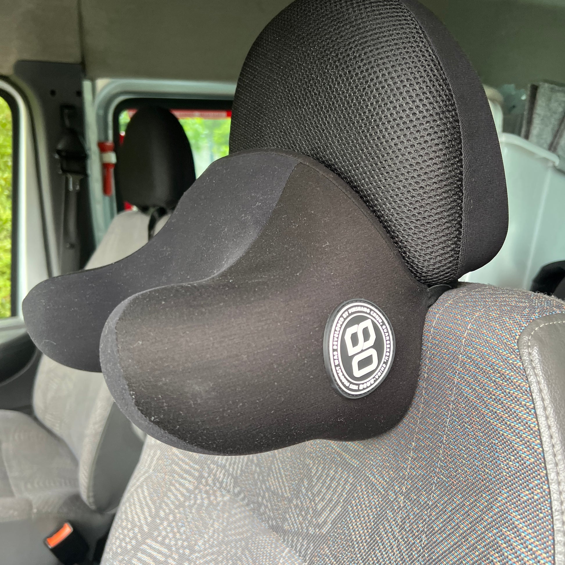 A neck and travel pillow with style. This pillow is both comfortable, and supportive. With an elastic strap and clip to snap it into place on your car seat, it helps to offer you support and better head and neck alignment when you’re on the road and travelling. It is great for those who get a sore necks, have low muscle tone, or a previous neck issue that can make travel otherwise difficult for you at times. Fantastic for  better support and comfort. These pillow can also be used for those who sit at an office work chair with a head rest on it, as well as at the cinema, at home on the couch, or for those who sleep on their backs in bed to help offer side support while you sleep.