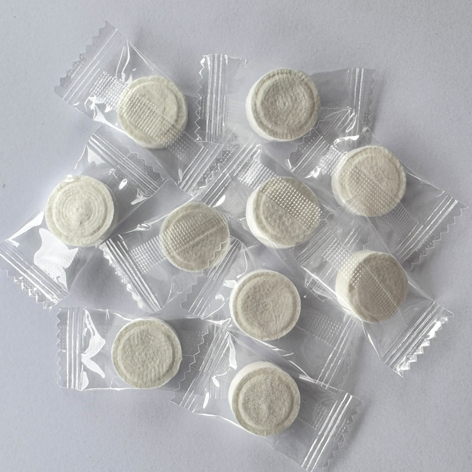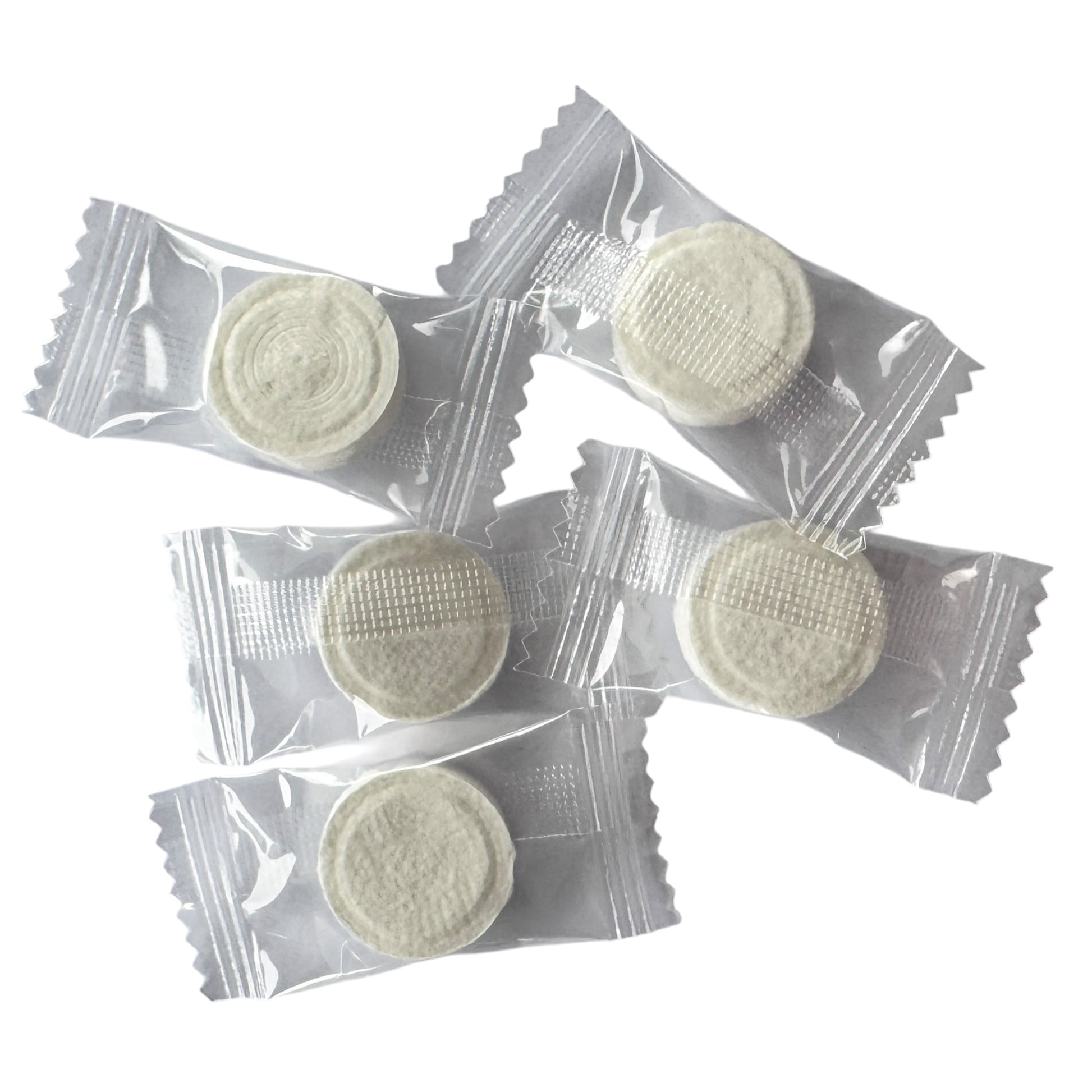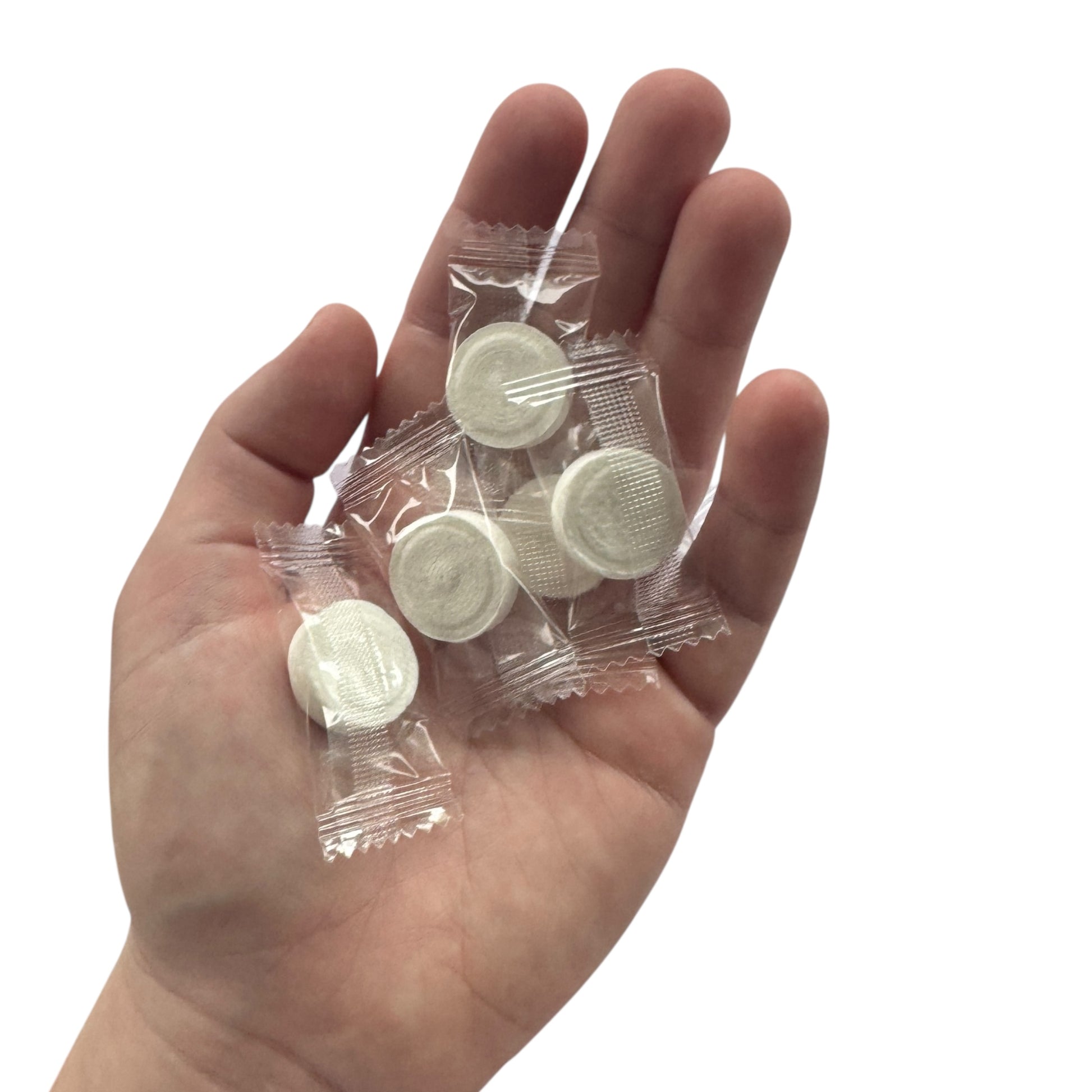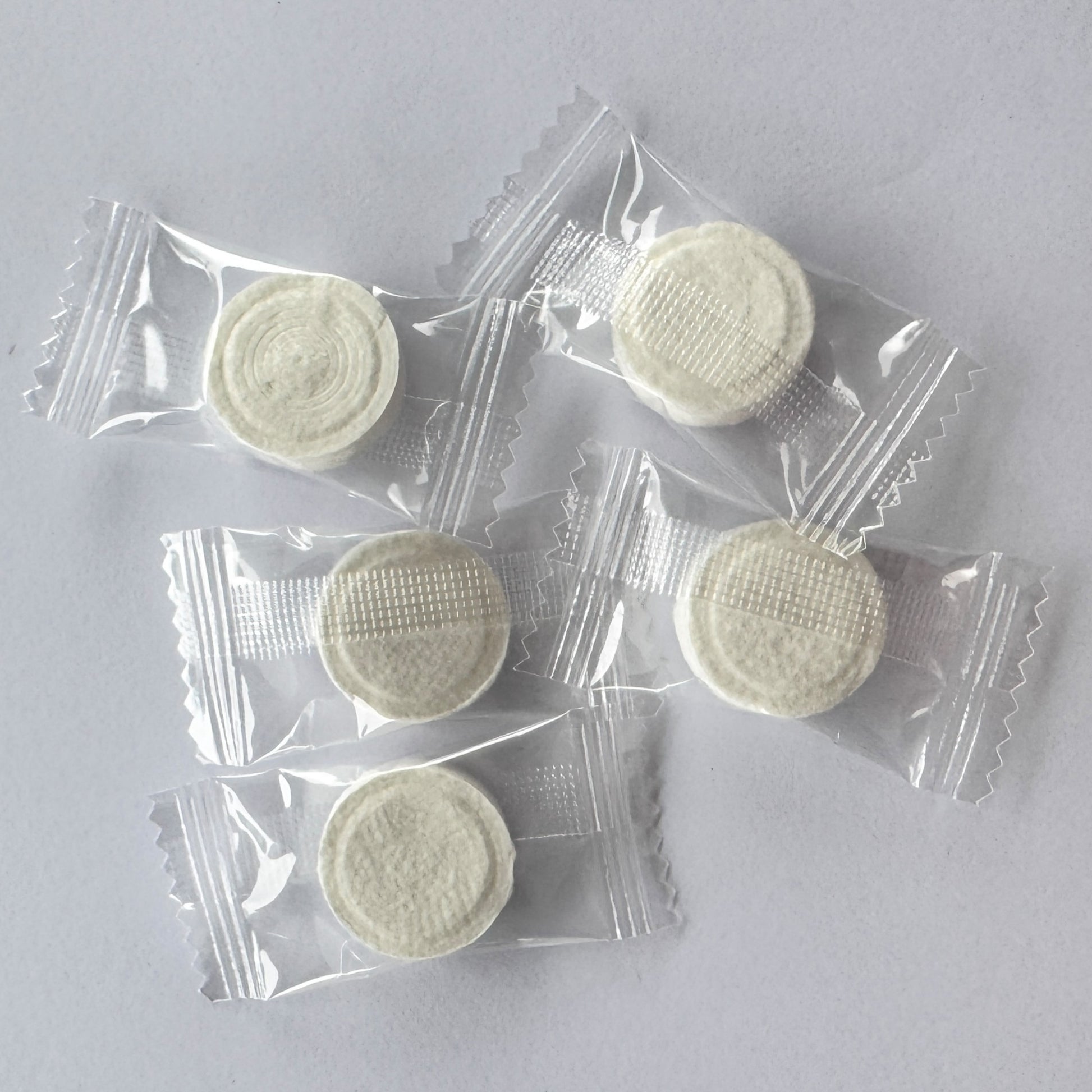 Great for soft, sensitive skin, these are both soft and comfortable to use. The compressed towels are made of a spun-laced non-woven fabric. They are delicate, soft, but hardy and strong. No pilling, no crumbling, and once used will naturally start degrading with time.