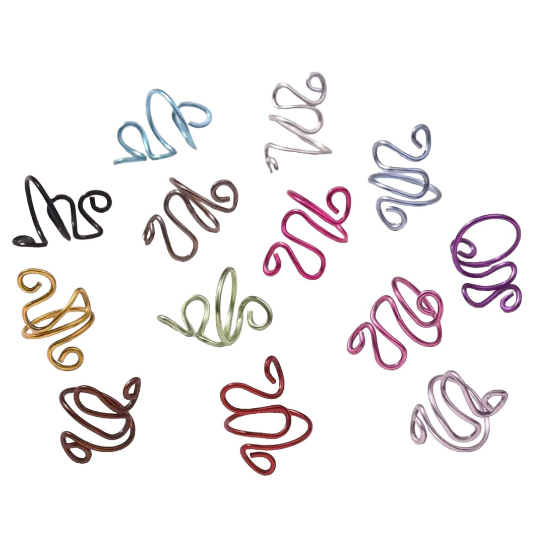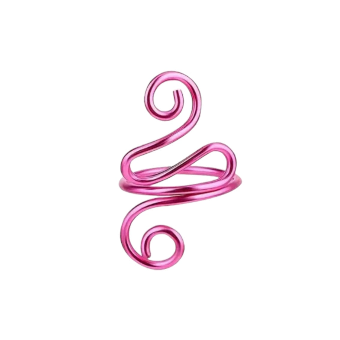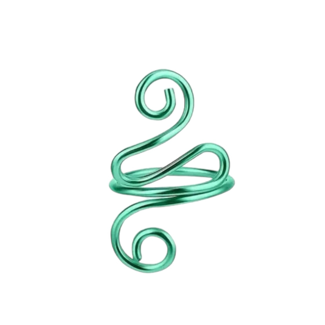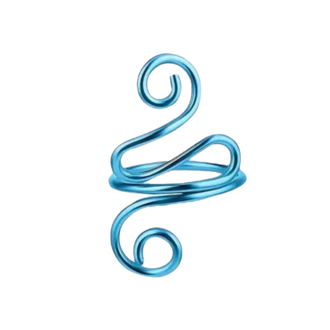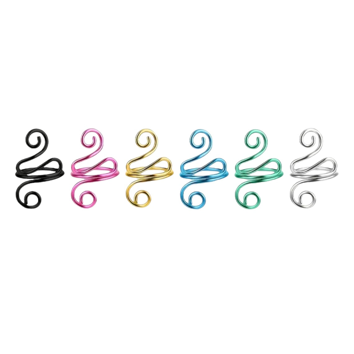 Image Description: The crochet tension rings is available in black, green, blue, silver, pink, and gold, each featuring a smooth, spiral design. One close-up image shows a blue ring in use, comfortably holding yellow yarn as it is crocheted with a hook. The ring is securely wrapped around a finger, demonstrating how it keeps yarn tension consistent without requiring much effort from the hand, making it an ideal tool for both general use and for those with hand conditions seeking comfort and ease in their crafting.