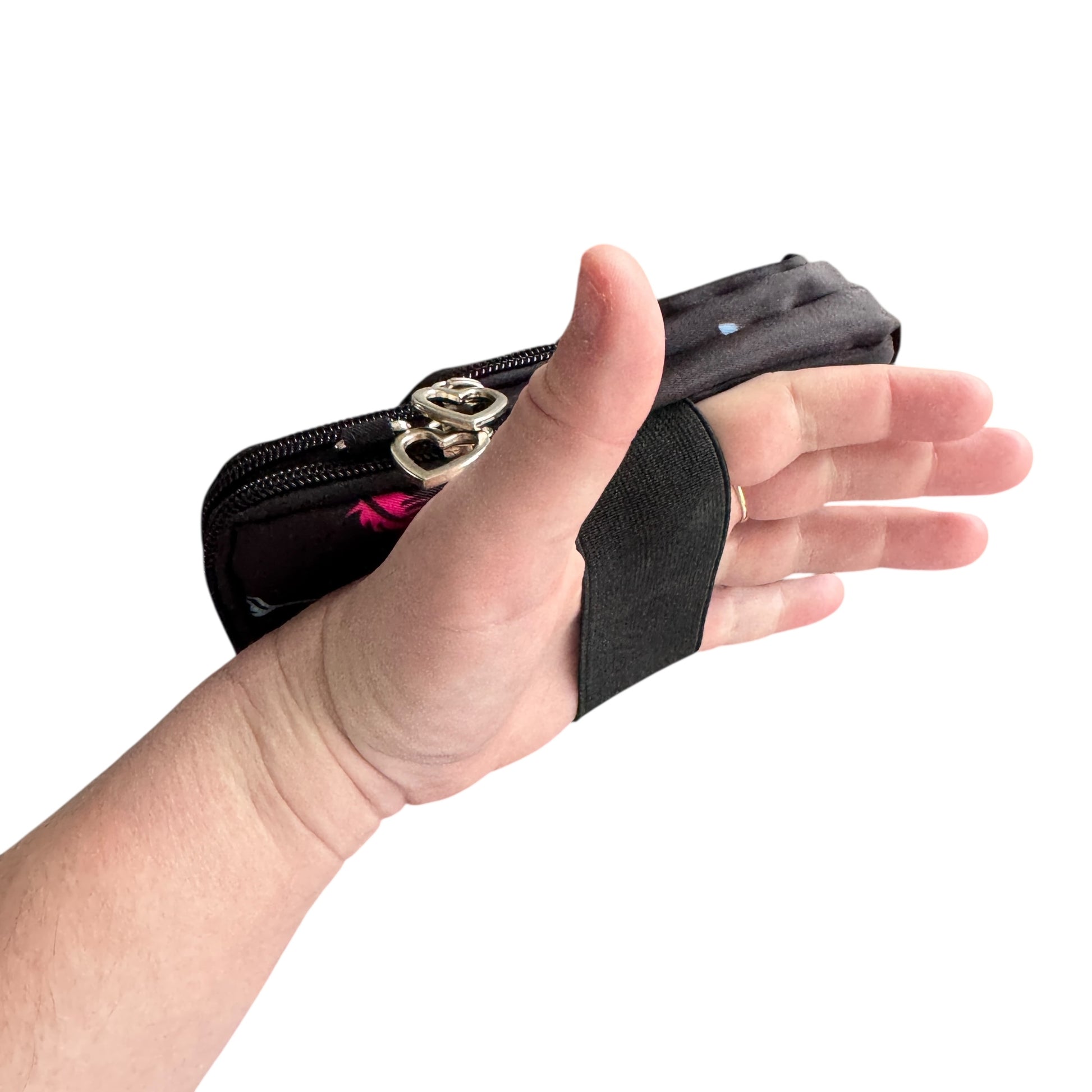 This clever little purse slips right onto your water bottle, instantly giving you convenient storage on-the-go. With two separate zipped pockets and a stretchy elastic strap, it keeps your small essentials secure, organised, and easy to reach, perfect when you’re heading out and about.