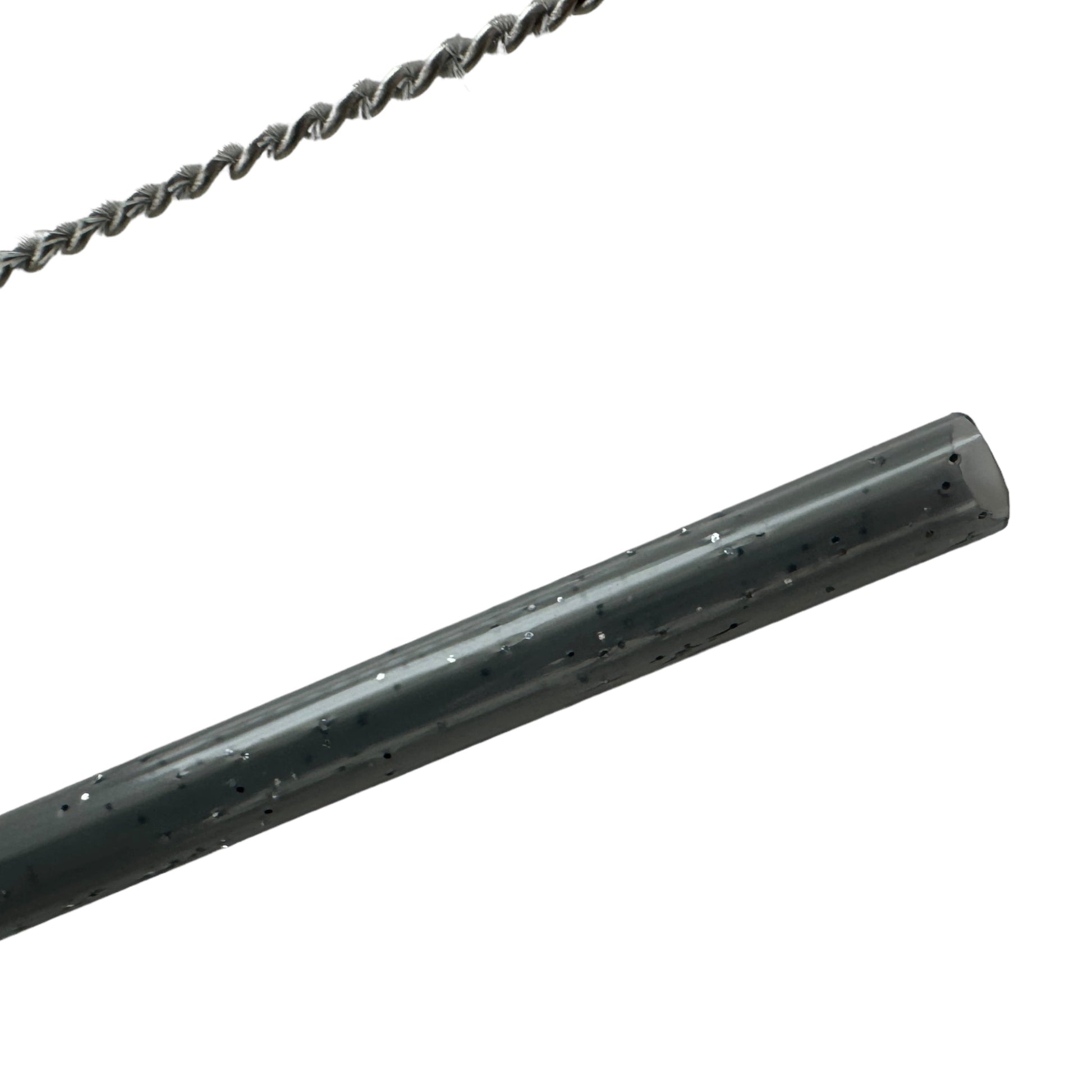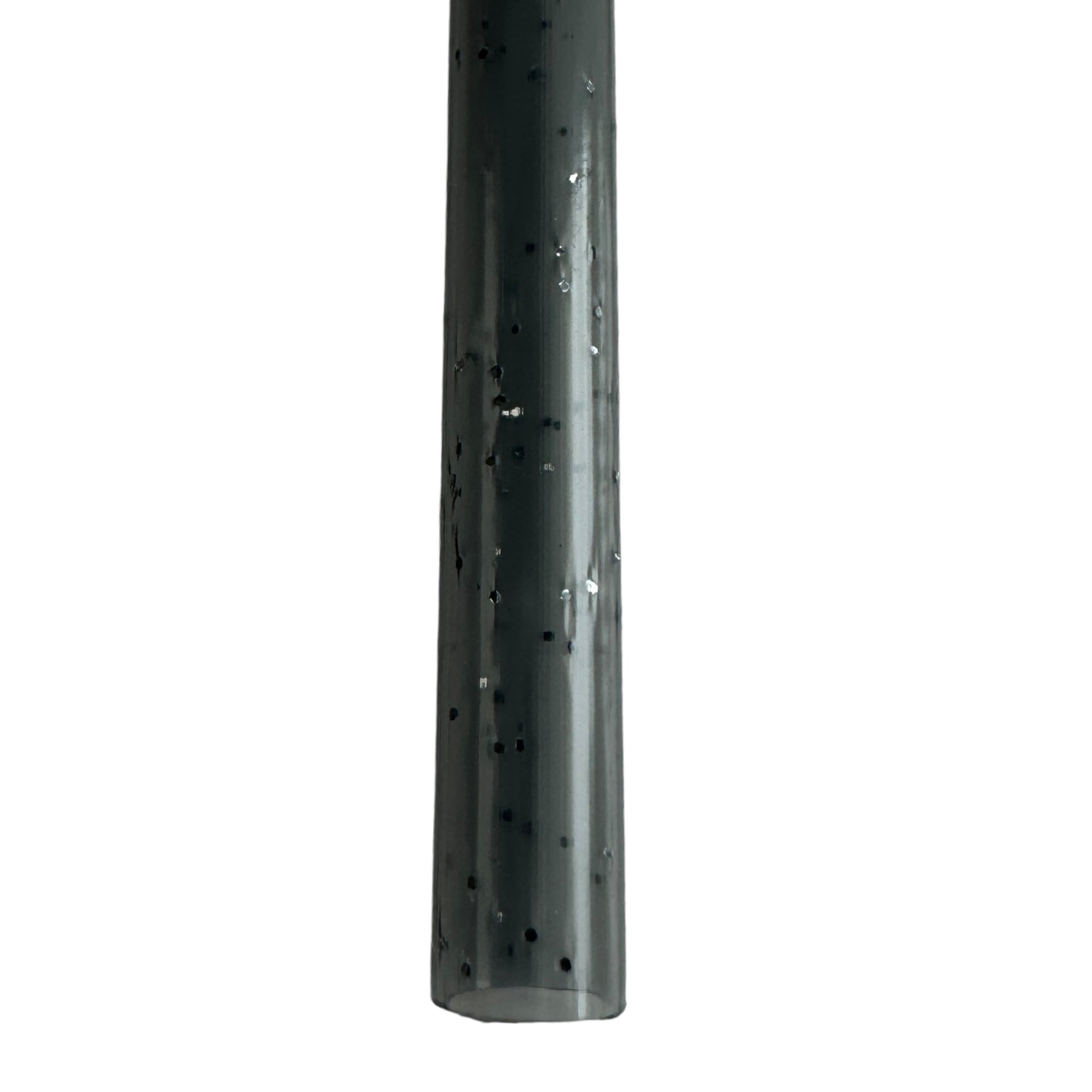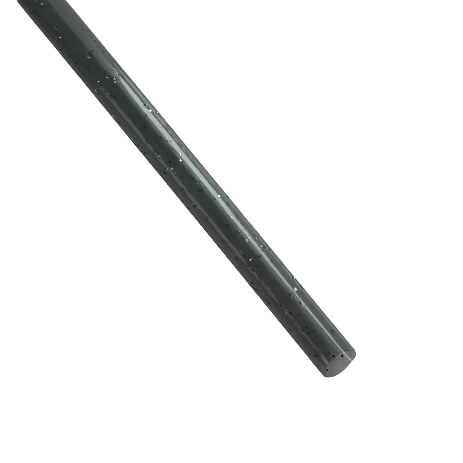 Image Description: Shows an extra long straw. It has an additional 10cm length to the standard straw size. It is a black plastic straw with some embedded glitter.
