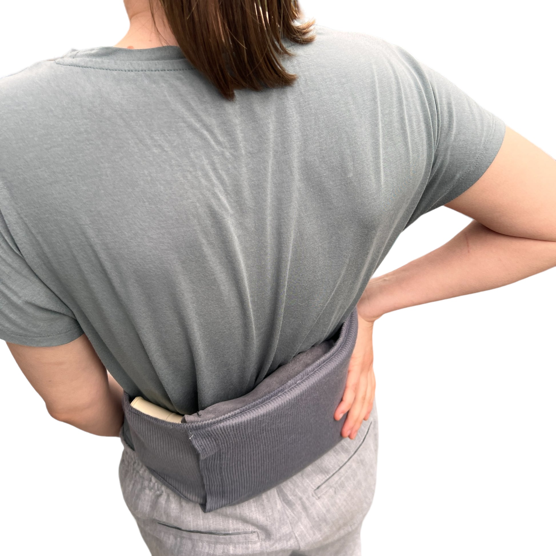 Do you experience back or belly pain? Do you often reach for a hot water bottle, heat bag, or ice pack to help relieve pain, muscle spasms, cramps, or to just bring warmth and comfort…? Does it get annoying holding the heat or ice against your belly or back and wish you could just strap it against you so you could go about your day and not worry? Or not have to find something to press or lay against to seek the full relief you are craving for? You’re not alone!