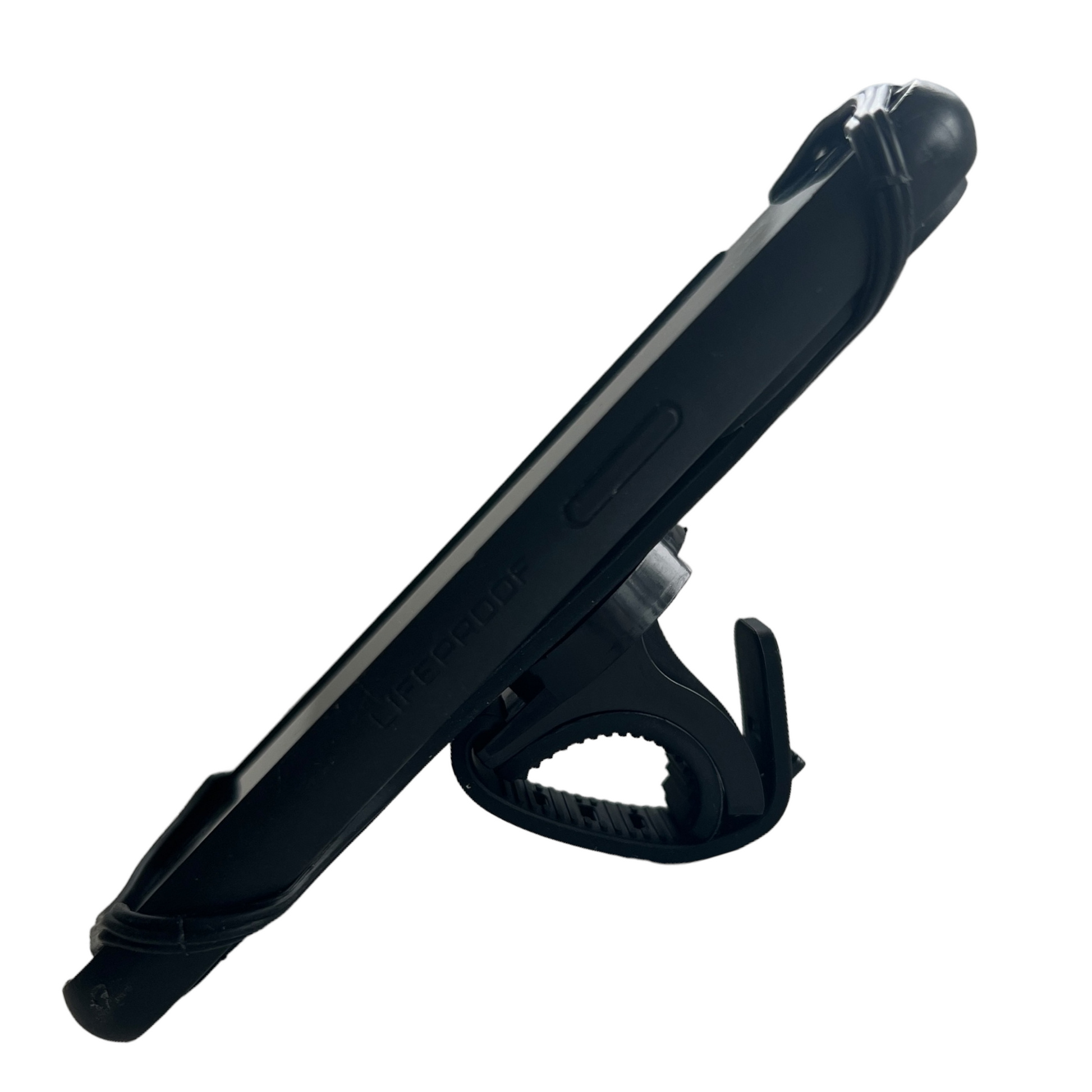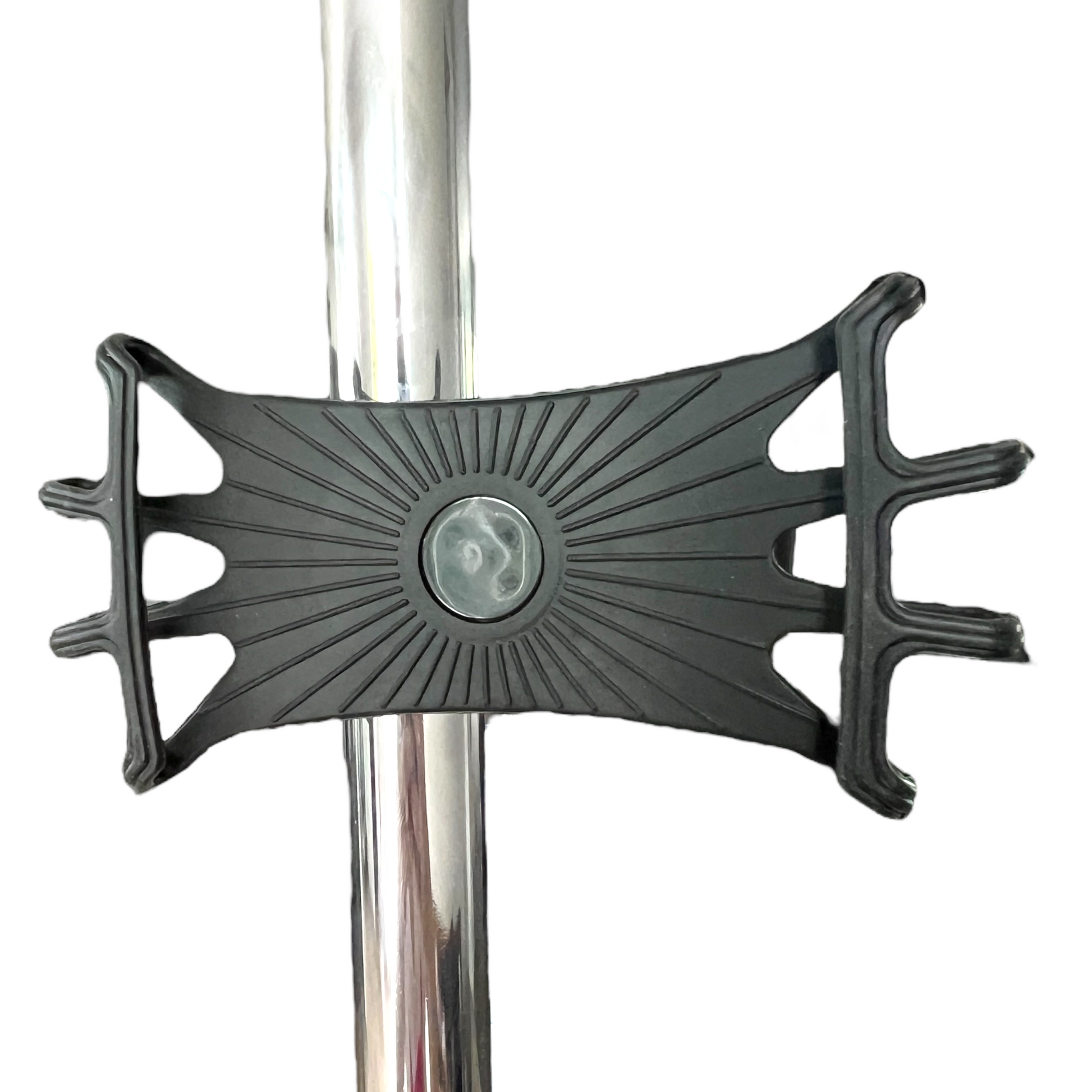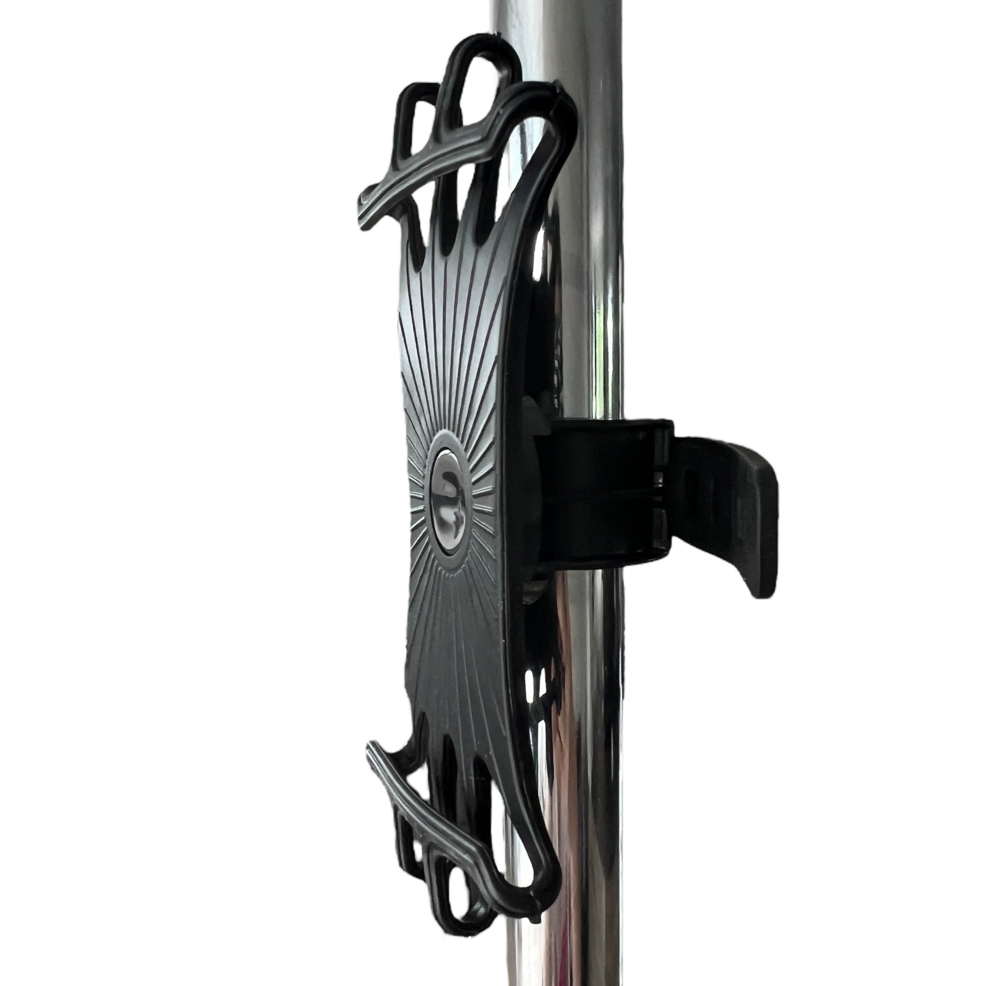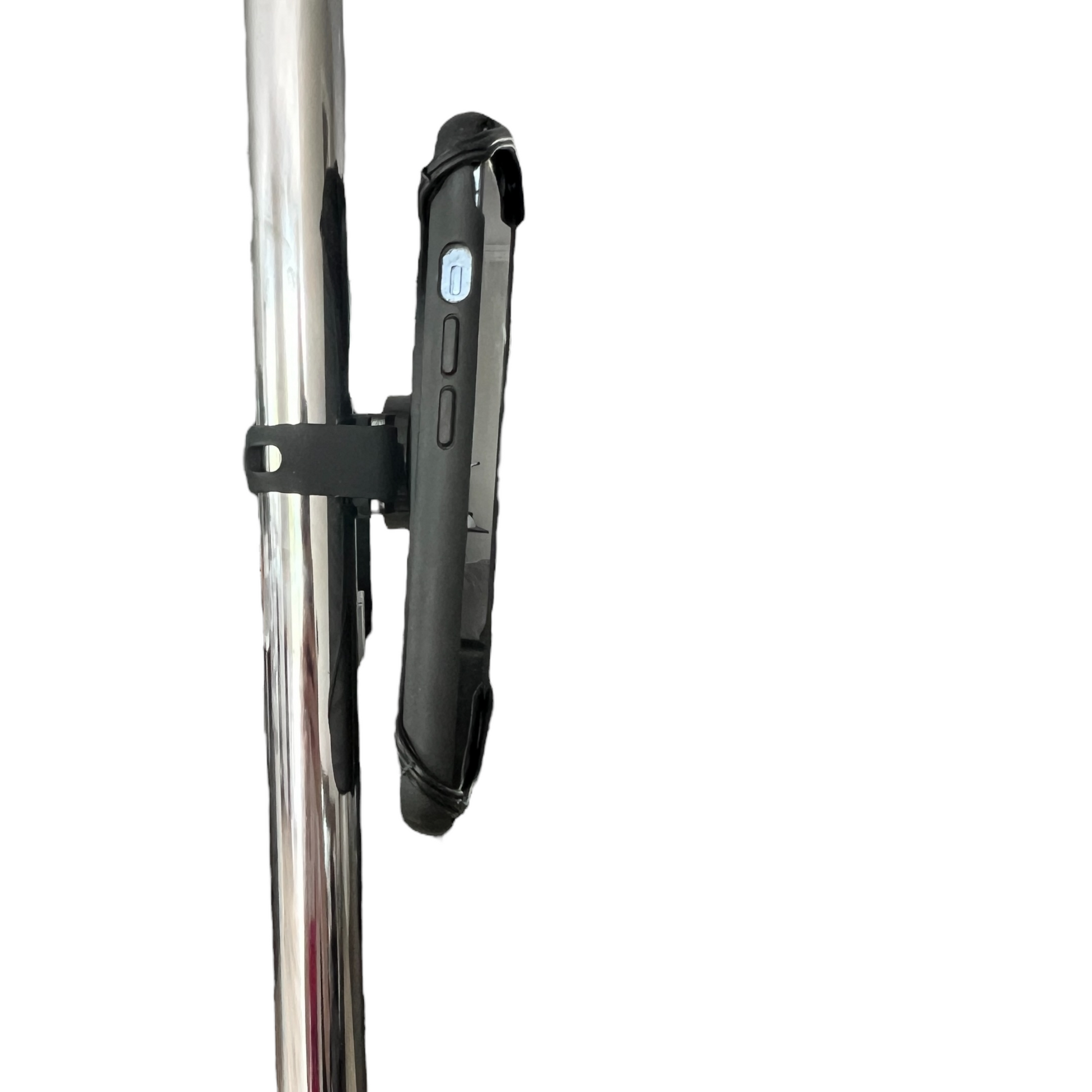 Attach the phone holder to your bike, a scooter arm, or onto your child’s push pram. Attach it to your video stand to help capture your video from another angle.  You can attach it to a music stand for speaking or presenting, or to to any handlebar. You can even attach it an IV pole, so that you can watch videos or talk on the phone as you go about managing care.