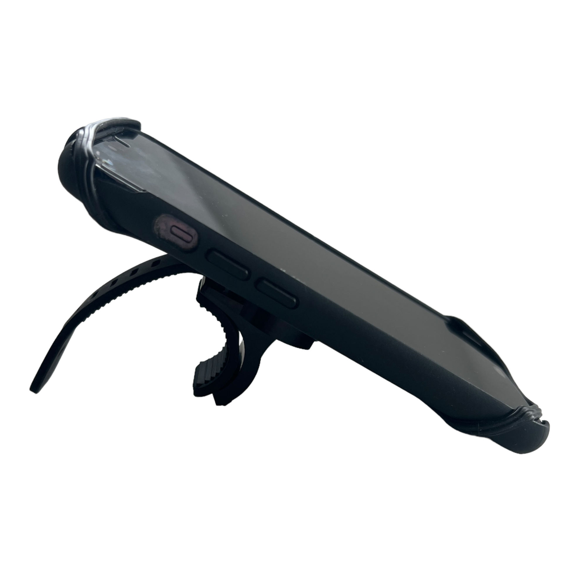 Great for navigating using your phone hands-free, if will wrap around and hold onto any phone between 10cm and 16.5cm in length. It can be placed so that it doesn’t cover your screen, camera, or charging port. The silicone strap allows you to wrap and clip the phone holder to any width pole, simply adjust the strap and which button hole you use to attach it to. It can be used with nearly all phone sizes and brands.