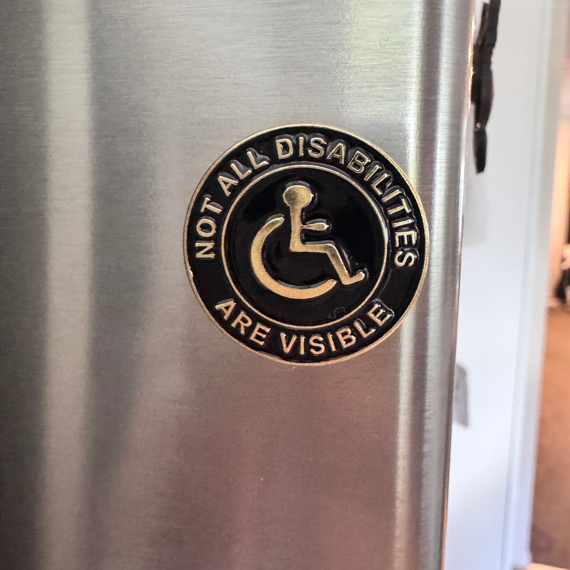 Image Description: Metal magnetic pin accessory. Is circular with a thin tube welded to the back. You can thread the button badge pin through this tube, and close the pin once it’s on. On the other side of this, is magnetic and will magnetise to the second disc. Place your shirt, or other items between these two discs, now your pin is magnetic, so you protect your clothes. Photos as above show this process in some pictures.