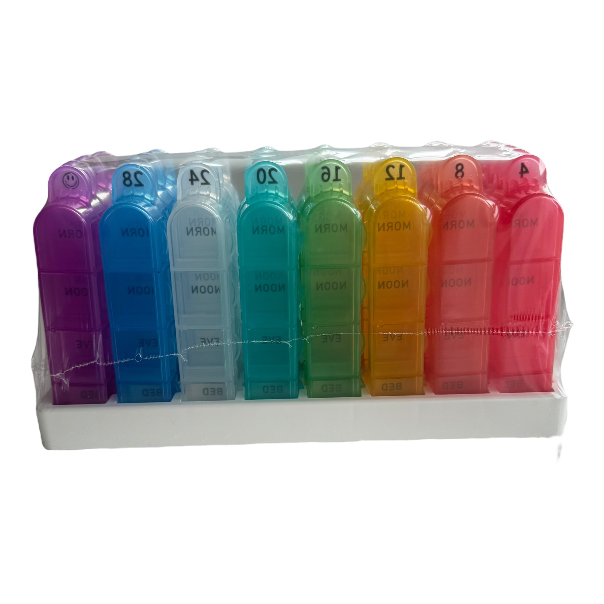 32 slot (1 month) medication management pill box organiser for all of your medication needs, with two compartments for your medications — 4 times a day.