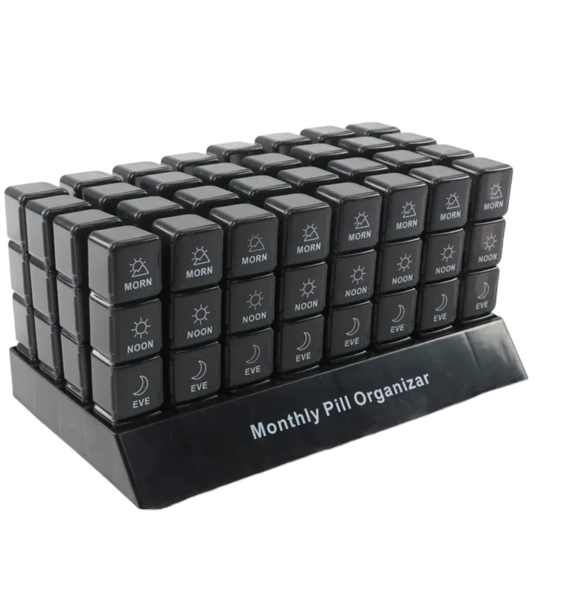 32 slot (1 month) medication management pill box organiser for all of your medication needs, with two compartments for your medications for AM and PM.