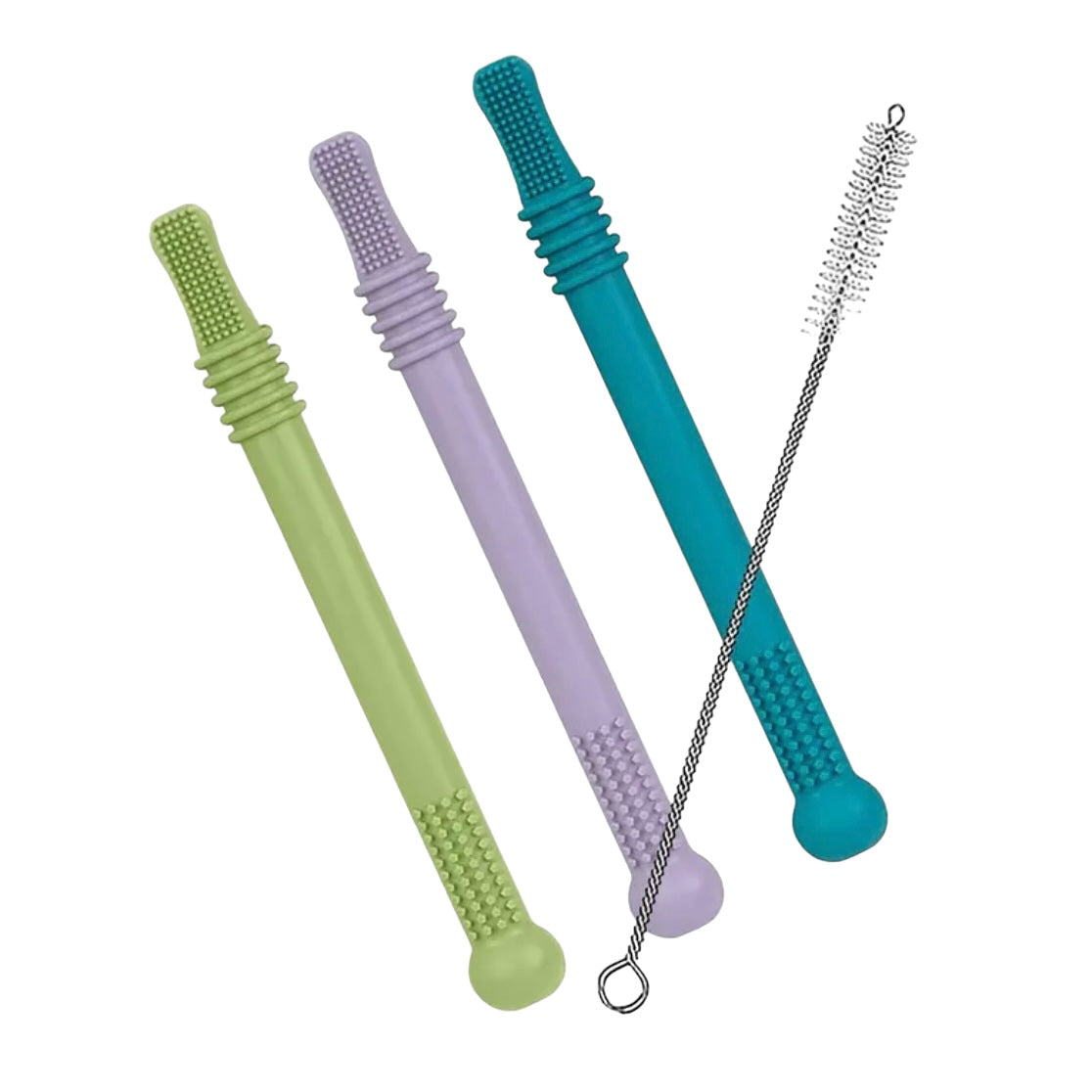The different tactile patterns on the straws make it interesting to play with, to stimulate oral sensory feedback, and can help hold tastes of first foods on the tube when it’s dipped into different flavours too.