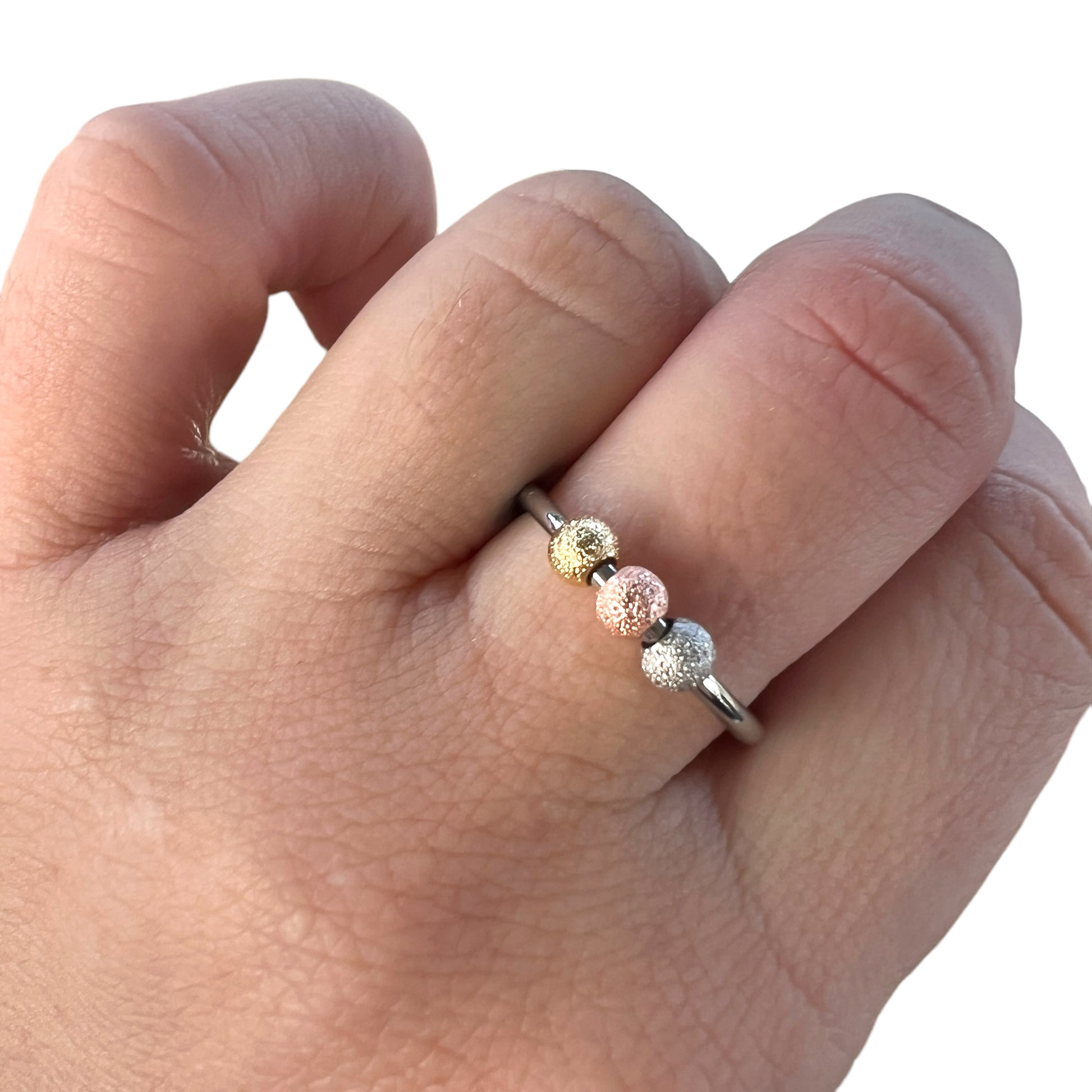 The Fidget Ring is made on a fully adjustable band to ensure it fit most adult finger sizes. (*For specifically sized and fitted rings — please see our note below). There are various options that are available for for the number of beads on each ring, and this depends on what you chose, and works best for your own needs.