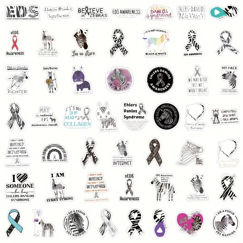 Collect your EDS themed stickers here! Perfect for decorating anything that you think needs some extra ‘pizzazz’ — from your braces to your vehicle, your laptop to your notebook, or wheelchair. These can be placed on a drink bottle, lunchbox and other items.