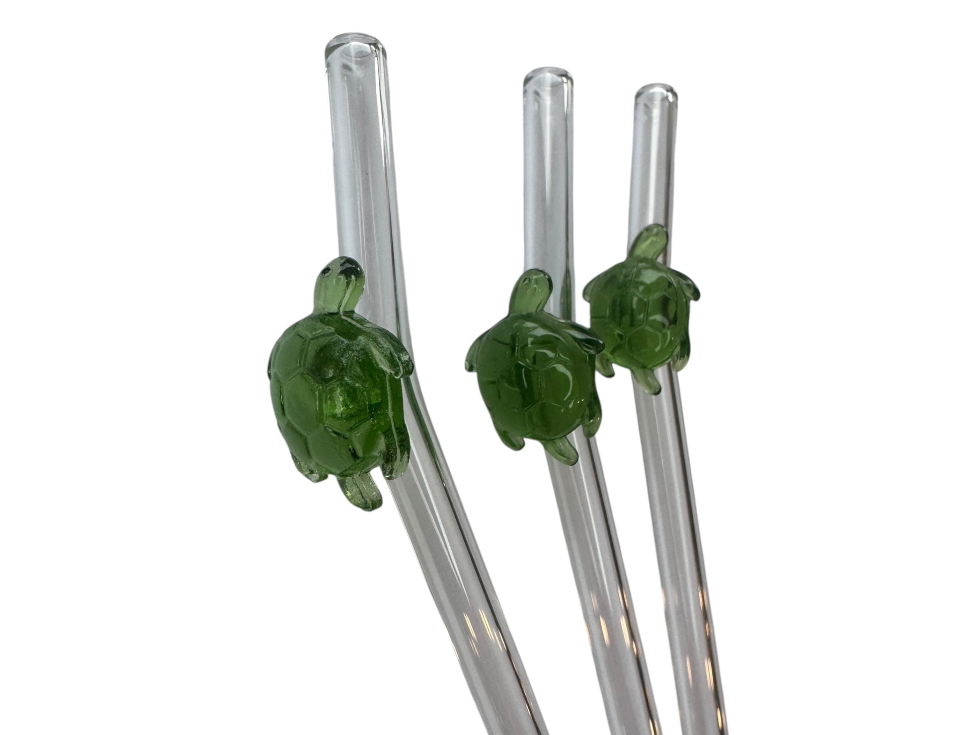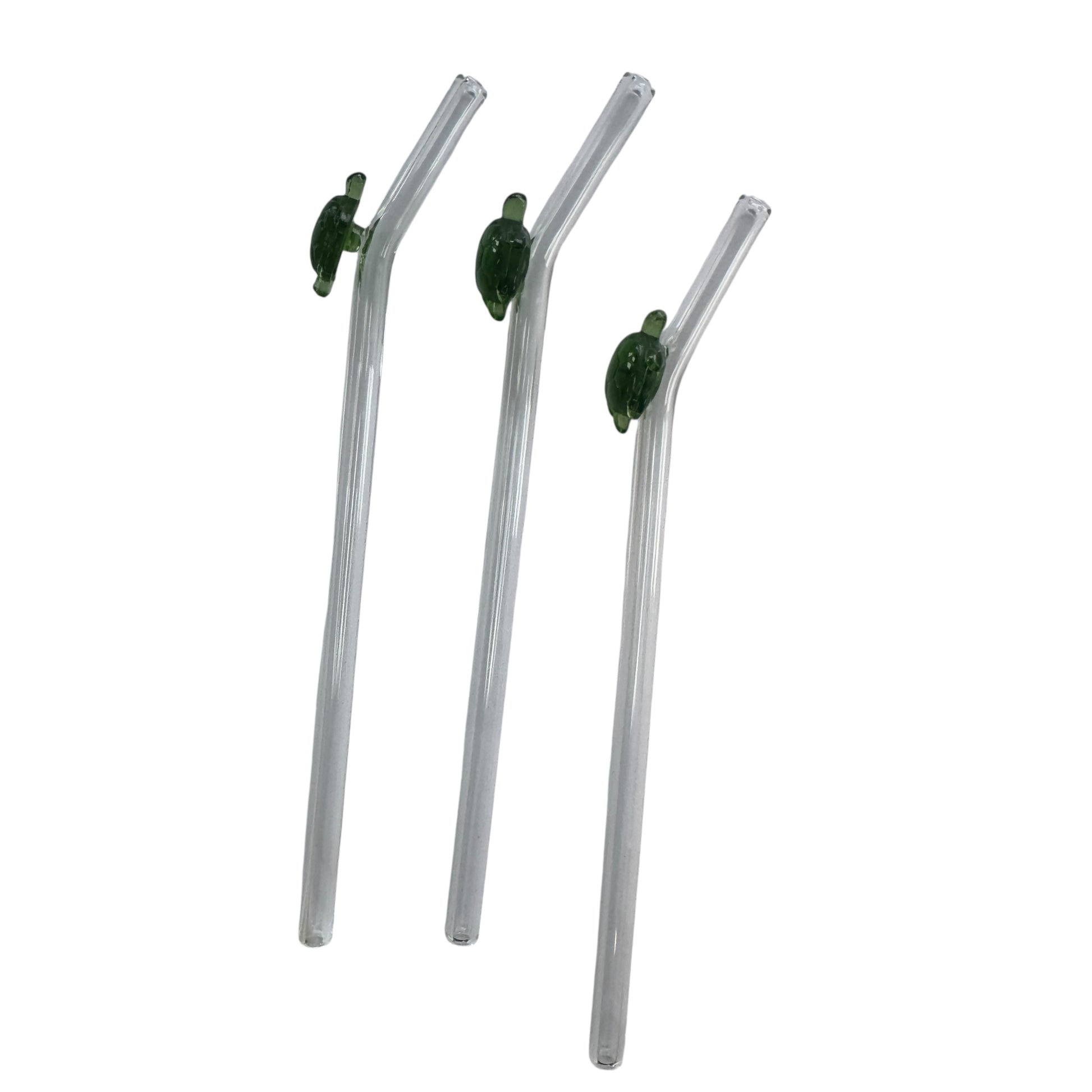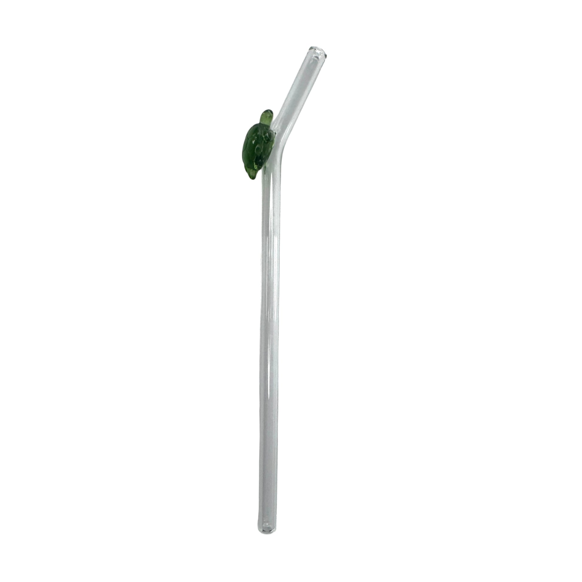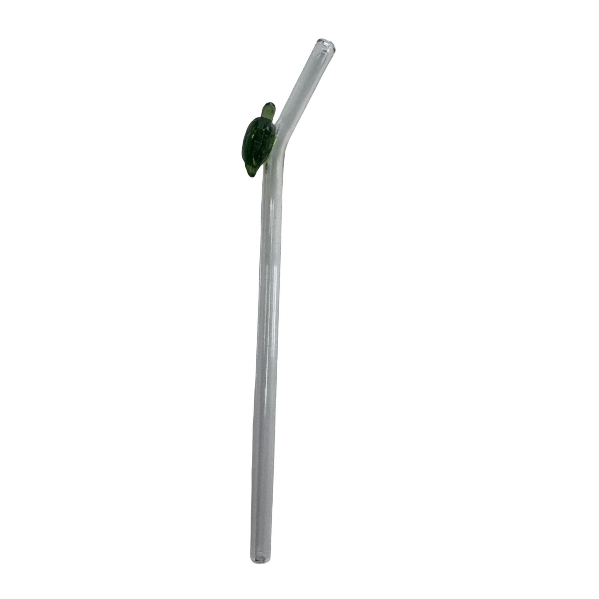 Image Description: A clear glass straw with a small glass green turtle design near the top.