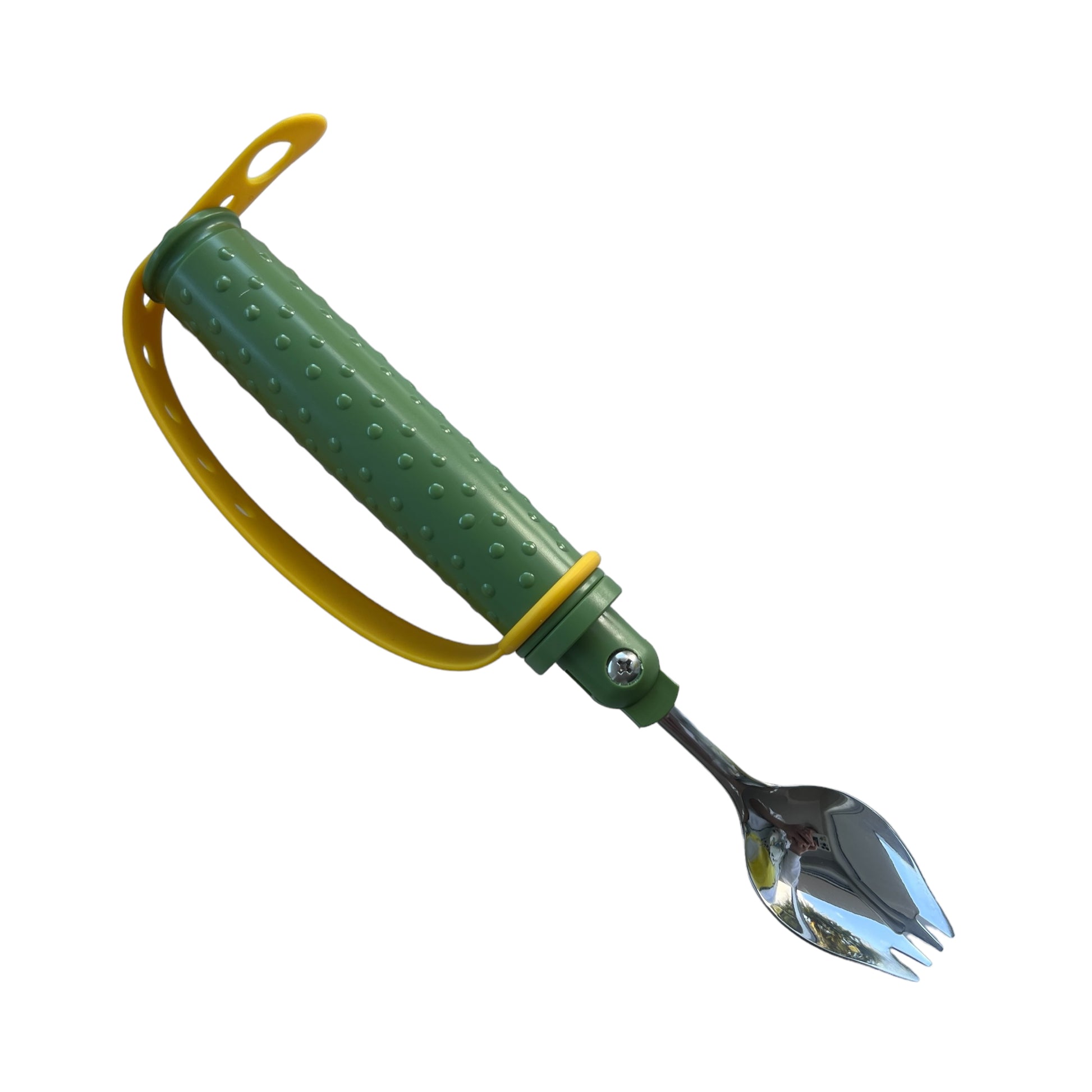 — This cutlery boasts 360-degree rotating capability to accomodate to the angle you need your cutlery for independent eating.