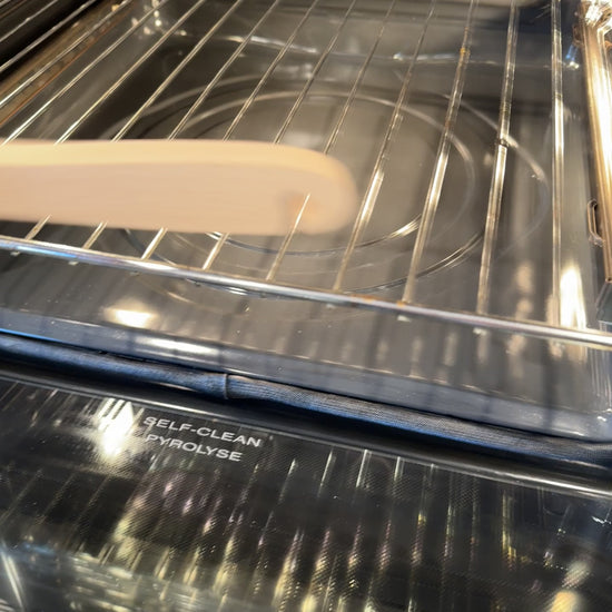 Benefits: Light weight, compact, hand + dishwasher safe, easy to hang, and looks super stylish as well! Can be used with a full size, toastie or kids oven. And works fine for both standing or built in oven as well…